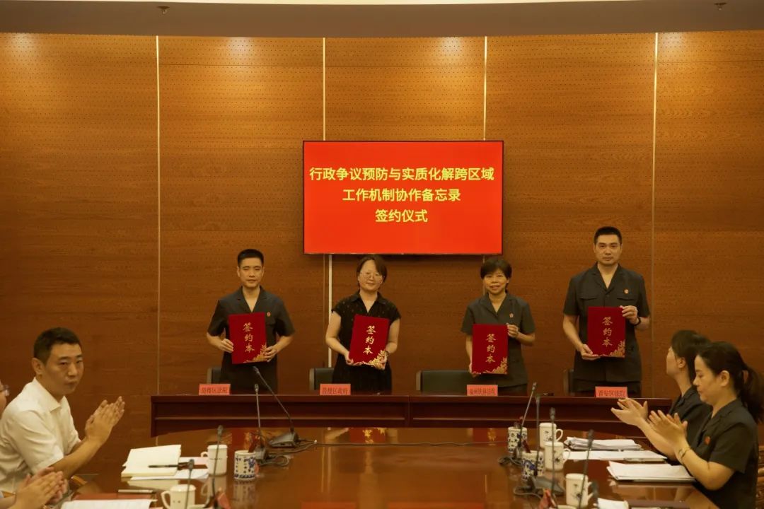 会上,鼓楼区政府、福州铁路运输法院、晋安法院、鼓楼法院共同签署了《行政争议预防与实质化解跨区域工作机制协作备忘录》。