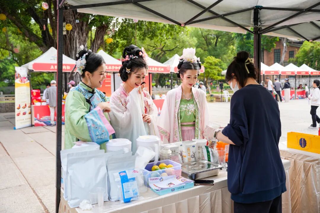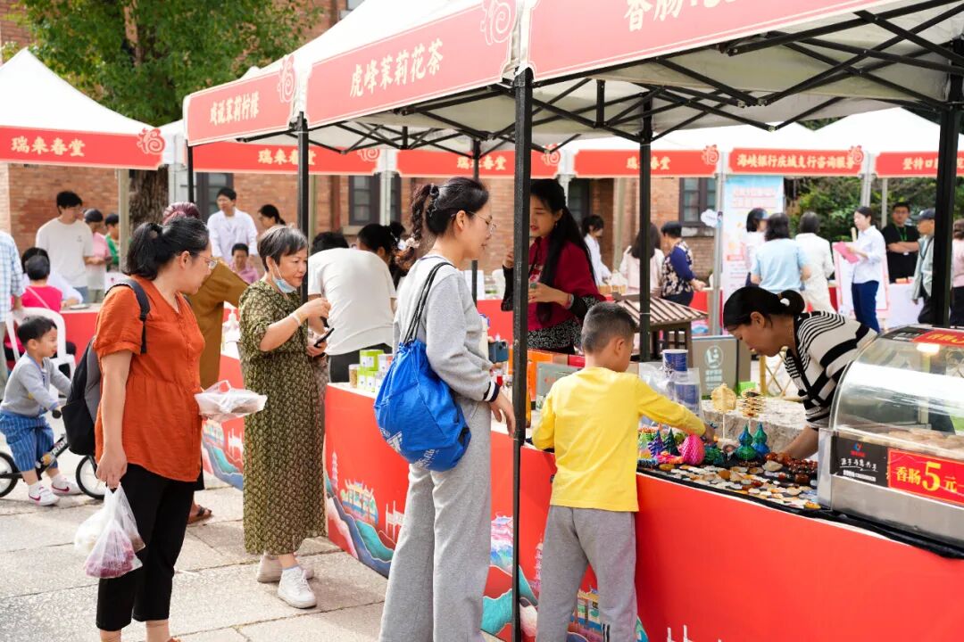 在冶山春秋园博物馆门口,一场充满烟火气的“社科集聚”热闹开市。市集巧妙地将社科普及与非遗体验、文创消费相结合。