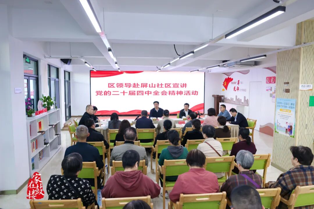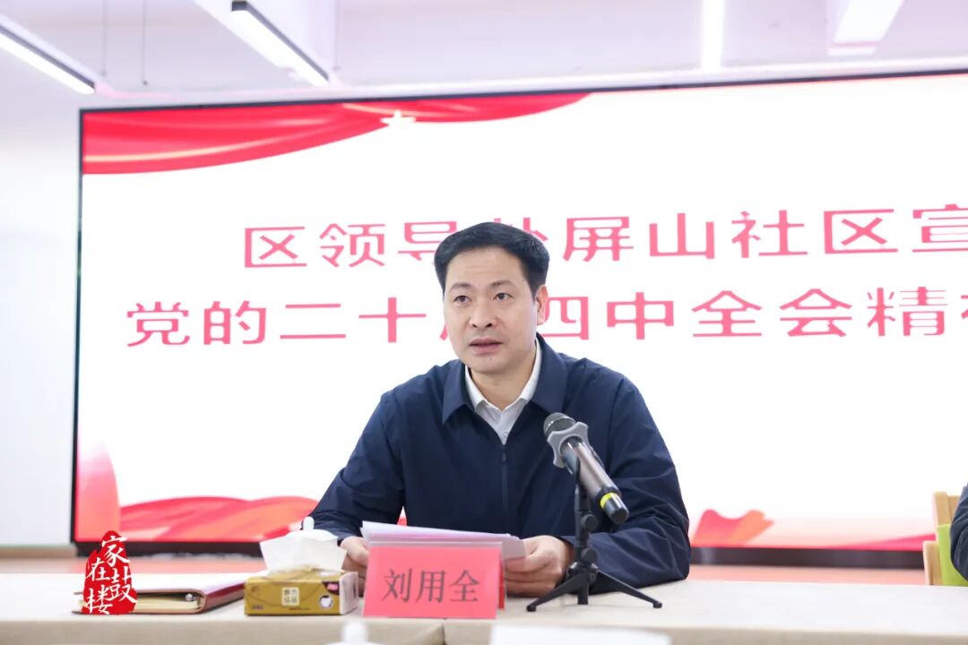 在屏山社区,刘用全走访了巢凤英党建工作室,并与相关负责人、居民群众深入交流,宣讲党的二十届四中全会精神。