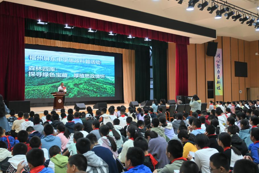 为深入学习贯彻习近平总书记给福建农林大学全体师生的重要回信精神,将习近平生态文明思想融入青少年思政教育,2025年11月18日,“森林四库:探寻绿色宝藏,厚植思政情怀”主题科普讲座在屏东中学屏北分校成功举办。