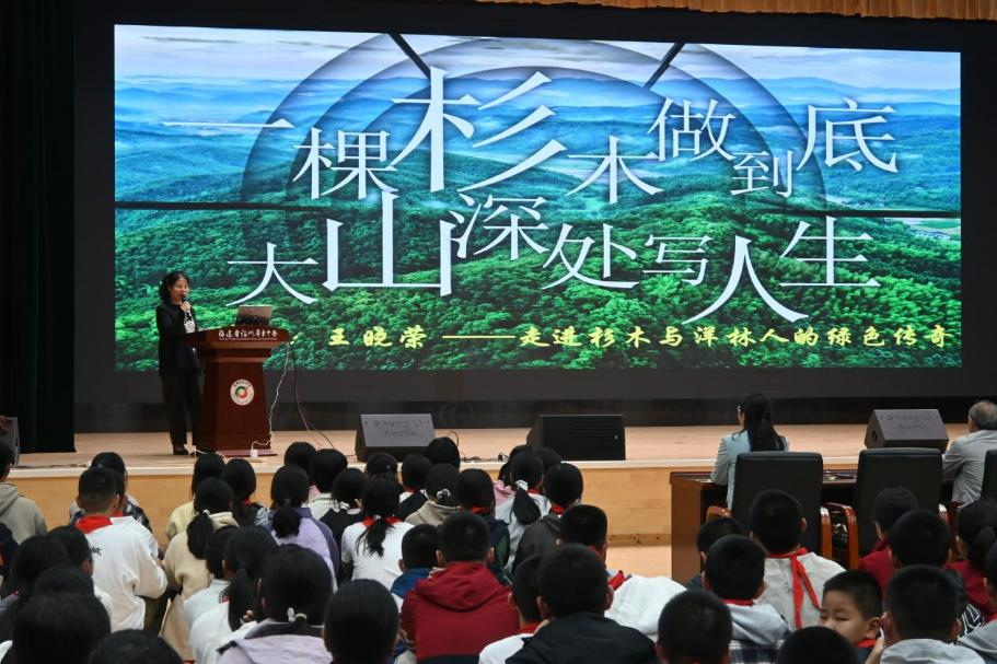 福建省洋口国有林场王晓荣以《一棵杉木做到底,大山深处写人生》为题,讲述了几代“洋林人”的坚守故事。从奠基者陈岳武教授扎根深山拓荒造林,到传承者刘大林女士接续奋斗,再到新一代青年接力奉献,他们用一生践行责任、用实干诠释担当的感人事迹,让同学们深刻体会到平凡岗位上的不凡坚守,读懂了“奉献”二字的时代重量。