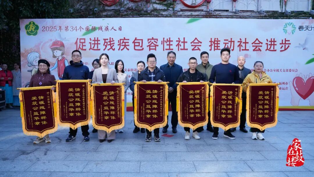 残疾人事业的发展离不开社会合力。活动现场,福州市残联副理事长项颐枫、鼓楼区副区长翁晖等领导为福建省国资康复医疗科技股份有限公司、福建省南下二代艺术团等12家爱心单位及爱心人士授旗表彰。福建省南下二代艺术团专程带来器乐演奏《爱的奉献》、歌表演《爱是一束光》等6个节目,以专业艺术水准传递大爱温暖。
