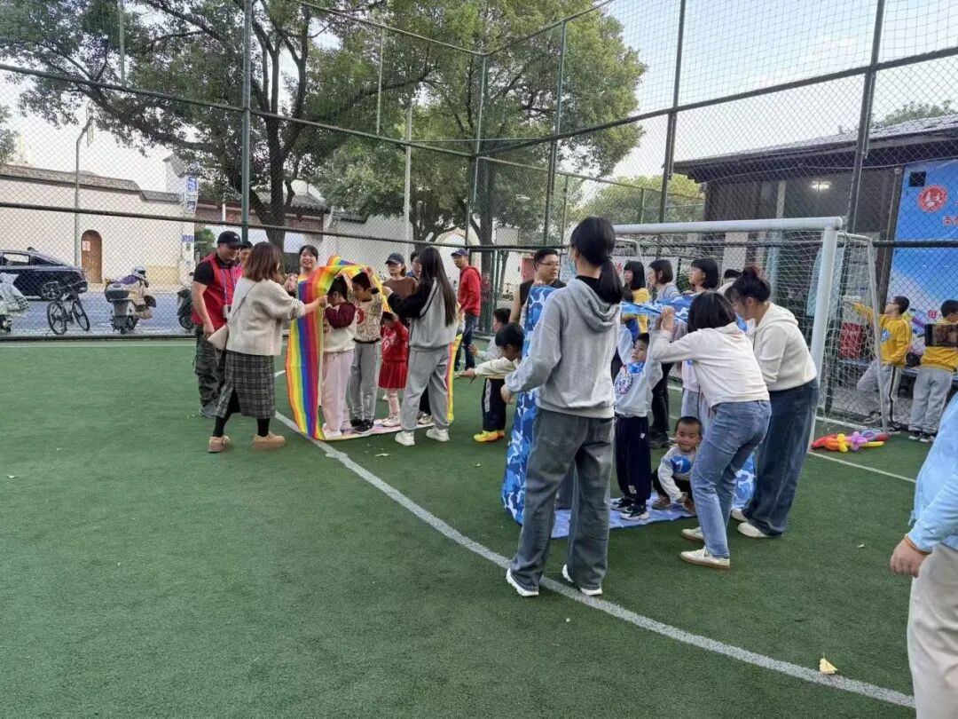 袋鼠跳跳袋项目中,大家套上布袋蹦跳前行;车轮滚滚环节,队员们协力操控履带道具,步调一致向终点进发;珠行万里、两人三足等项目将亲子互动推向高潮,家长与孩子并肩配合,在默契协作中完成挑战;最后的足球比赛更是点燃全场,小球员们奔跑拼抢、奋勇射门,精彩表现赢得阵阵掌声。