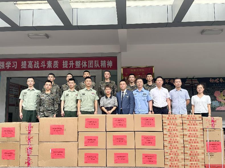 为庆祝中国人民解放军建军96周年,弘扬拥军优良传统,推动军民融合发展。2023年7月27日,在“八一”建军节来临之际,温泉街道党工委张林书记、共建单位福建省退役军人事务厅、福建万博建设工程有限公司、福州八闽楼颐豪酒店、同福医口腔、辖区段警、东大社区党委书记等一行对驻区武警部队官兵进行了走访慰问,致以节日问候,并送去慰问品,共叙军民鱼水深情。