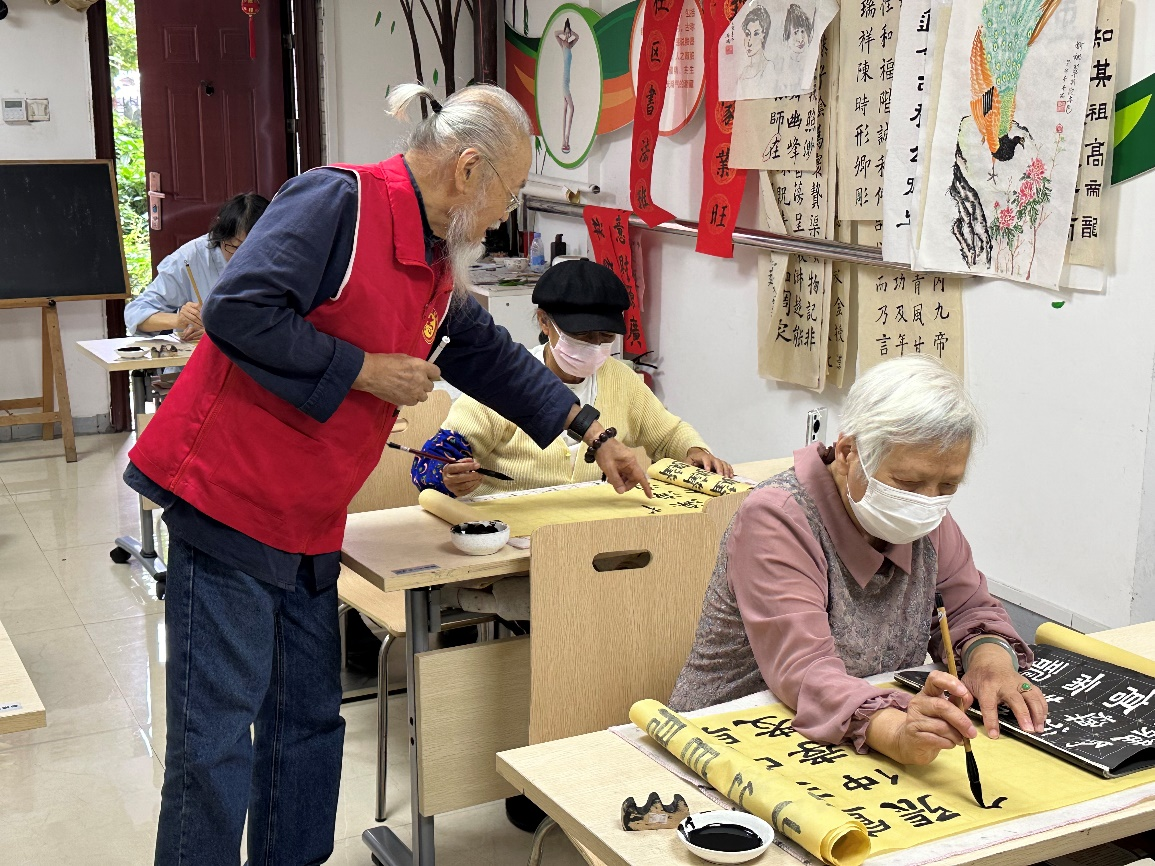 为满足辖区内老年人的学习需求,2023年11月9日,福州市鼓楼区老年大学温泉街道分校东大社区教学点持续开展老年人公益课堂“书法班”。