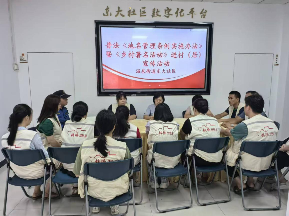为进一步提升对地名管理法规的认识水平,推动地名文化的保护与传承。2024年9月3日,温泉街道东大社区开展普法《地名管理条例实施办法》暨《乡村著名行动》进村(居)宣传活动。