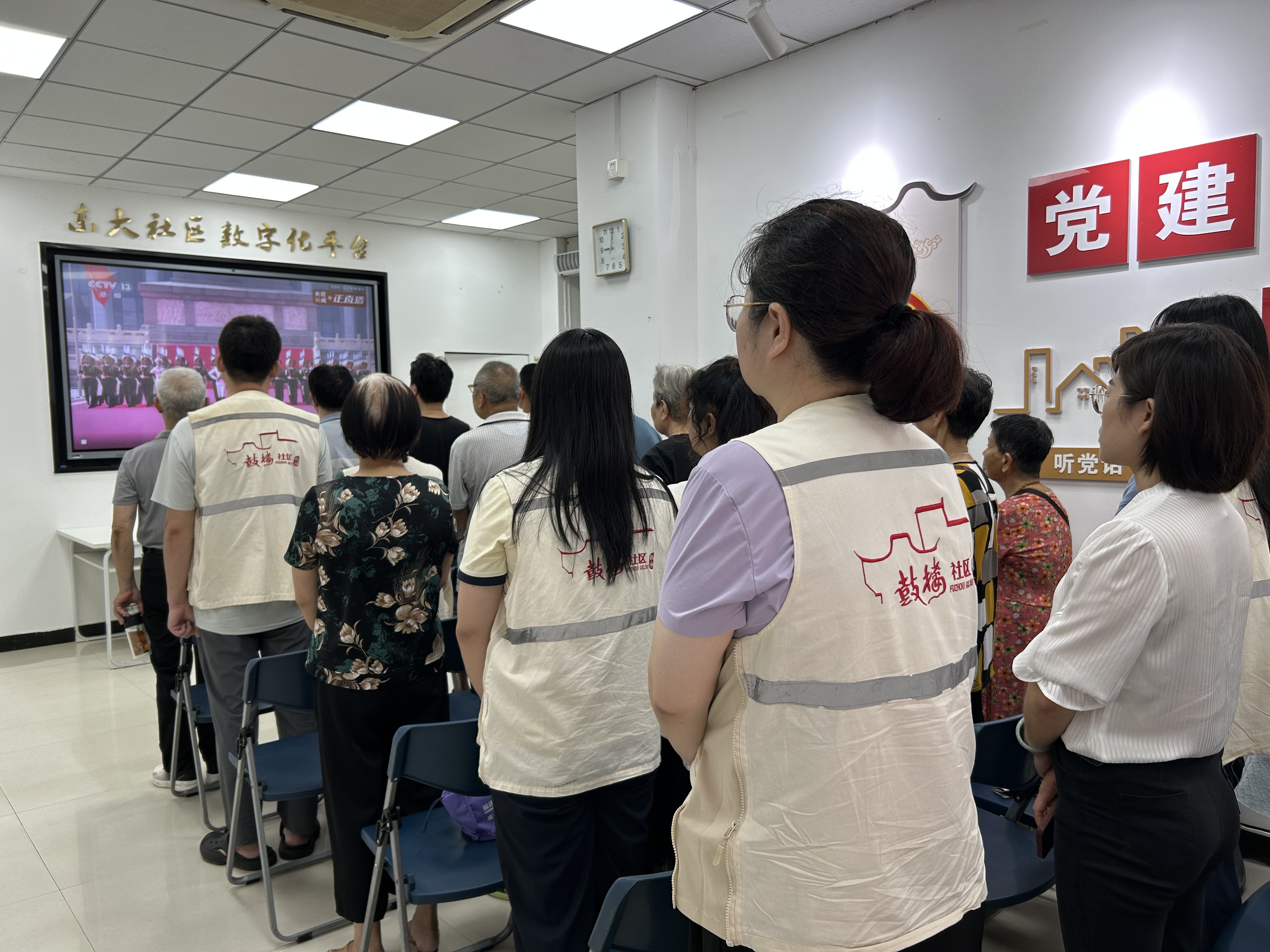 为纪念中国人民抗日战争暨世界反法西斯战争胜利80周年,深切缅怀革命先烈,弘扬伟大抗战精神,激发爱国热情,凝聚社区奋进力量。2025年9月3日,东大社区组织社区工作人员、社区市民委员会市民代表、单位人才代表、侨胞侨眷、退役军人、党员及居民在社区服务中心集中观看——纪念中国人民抗日战争暨世界反法西斯战争胜利80周年大会。