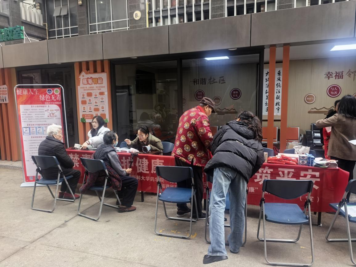 活动现场,青年志愿者们通过图文并茂的展板、仿真毒品模型及科普手册,系统向居民讲解传统毒品与新型合成毒品的区别及危害,通过仿真毒品模型向居民介绍各类毒品相关知识,让居民掌握辨识新型毒品的方法技巧。现场为社区居民进行基础血压、血糖健康监测诊疗,提供专业用药指导,解答老年人用药疑问,提升用药安全水平,帮助老年人群体详细了解自身健康状况。