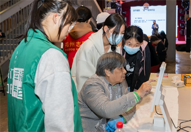 活动伊始,签到台便洋溢着温馨氛围。每位参与者及家属在领取一次性手套的同时,更收获了诚挚的节日问候。东湖社区邻里汇在现场还特设AI中医检测服务,为居民提供便捷的健康检测体验。随着人员陆续就座,一场沉浸式民俗文化课徐徐展开。活动特邀民俗传承人,生动讲解“冬至大如年”在福州的深厚文化渊源,细致传授搓米时的独特讲究——“搓双不搓单,象征成对团圆”,并娓娓道来冬至饮食文化的悠长韵味。讲解过程中穿插的有奖问答环节,更将现场气氛推向高潮,答对者喜获精心准备的“福州冬至民俗盲盒”,让知识科普与惊喜体验相得益彰。