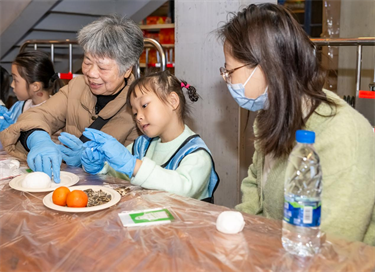 随后,大家围坐桌旁,开启了最令人期待的搓米时体验。银发长者手法娴熟,耐心指导年轻一代;孩童们兴致勃勃,捏出形态各异的米时,在指尖互动中感受传统文化的温度。一颗颗圆润饱满的米时在掌心搓转成型,承载着大家对团圆美满的朴素祝愿。现场还准备了地道的福州福橘供大家品鉴,味觉与记忆交织,唤醒了深植于心的乡土情怀。