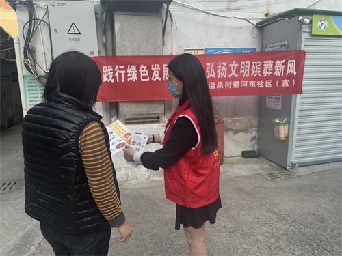 又是一年春草绿,一年一度清明来。为摒弃祭祀陋习,树立文明祭祀新风尚,4月4日,温泉街道河东社区组织开展“践行绿色发展理念 弘扬文明殡葬新风”移风易俗宣传活动。