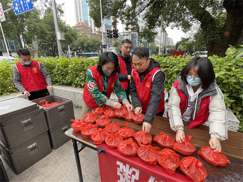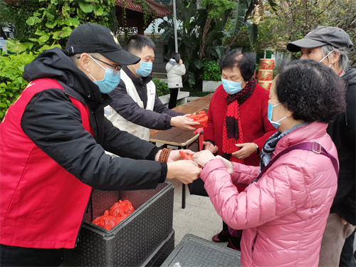 台上活动精彩纷呈,台下志愿服务忙不停。党员、团员、师生及社工志愿者们端上一碗碗精心熬制的拗九粥,送给社区的居民们。这碗香甜浓郁的拗九粥代表的不单是对父母的“孝”,也饱含着亲情、民俗等弥足珍贵的传承,是“孝”也是“福”,关爱老人的志愿服务让拗九节成为福州的节庆文化品牌。除了向老人送上一份孝心,现场还针对老人的需求,提供义诊及义剪服务。