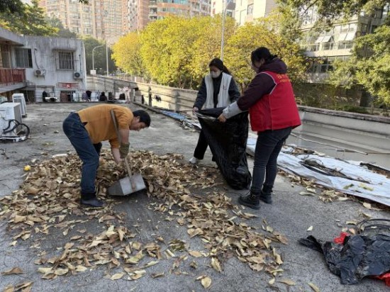 活动中,志愿者携带扫把、垃圾袋等工具开展清洁工作,重点清理小区楼顶垃圾、楼栋周边及公共区域堆积的杂物,同步对辖区河道旁道路进行全面清扫,清除路面垃圾,整治卫生死角。