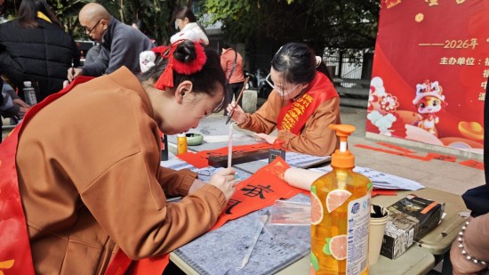 新春将至,年味渐浓。为传承和弘扬中华优秀传统文化,让社区居民在浓厚的文化氛围中感受新春的温暖与祝福,2026年1月29日,河东社区在同寿园开展“墨香浓情迎新春 情暖邻里送祝福”——2026年“我们的节日·春节”暨“节日感党恩 共话新时代”主题活动。辖区居民、企业人才代表、两会一员、辖区台胞等共同参加。
