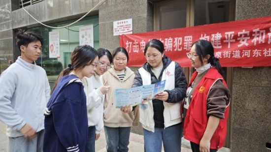 为深入推进楼宇党建工作走深走实,切实筑牢辖区群众防范电信网络诈骗的思想防线,2026年2月13日,河东社区在阳光假日公寓广场开展“打击电信诈骗犯罪 构建平安和谐社区”主题反诈宣传活动,将反诈知识送到群众身边,以党建红引领平安蓝,全力营造全民反诈、全社会反诈的浓厚氛围。