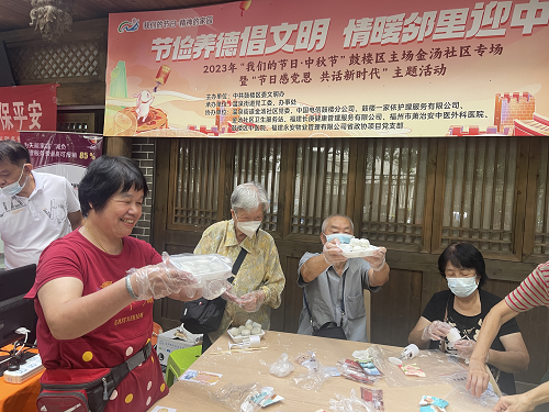 在中秋节来临之际,为大力弘扬中华民族传统文化,营造浓厚的节日氛围,9月26日,由鼓楼区委文明办主办,温泉街道党工委、温泉街道平安办、金汤社区党委、金汤社区新时代文明实践站、中国电信鼓楼分公司、鼓楼一家依护理服务有限公司、金汤社区卫生服务站等多家单位承办的“节俭养德倡文明 情暖邻里迎中秋”——“我们的节日·中秋节”暨“节日感党恩 共话新时代”主题活动在金汤社区长者食堂举办。、
