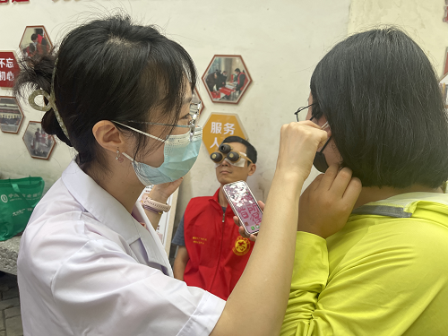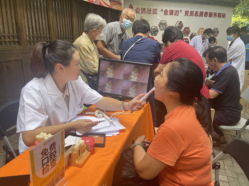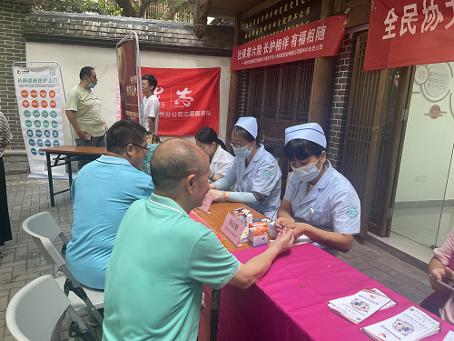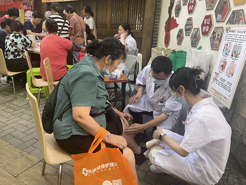 现场还有健康义诊,医务志愿者们热情地为前来咨询的居民提供免费测量血压、中医理疗等服务,根据个人身体状况仔细叮嘱饮食、用药注意事项并宣传健康医学知识、医疗卫生惠民政策。