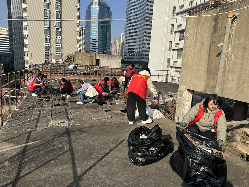 大家聚焦小区内公共活动空间、楼顶等重点区域,对废旧家具、垃圾、角落堆积杂物进行拉网式清理,不放过任何一处卫生死角,形成“党员带头、全员参与”的整治合力。