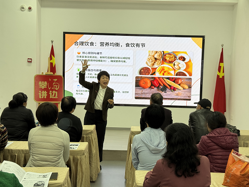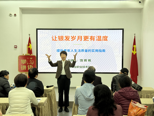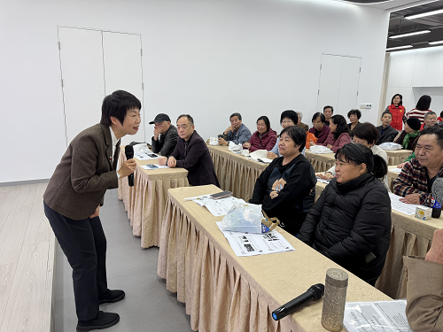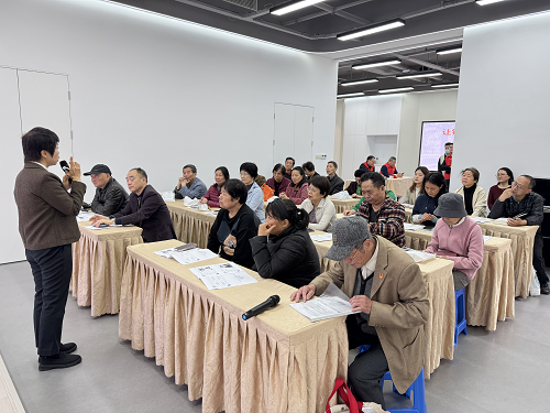活动现场,饶晖帆老师以“筑牢健康根基、丰盈精神世界、重建社交联结、夯实生活保障”四大核心模块进行现场讲解,系统讲解老年人科学锻炼、合理饮食、健康监测、兴趣培养、社交互动及居家安全等实用知识,帮助老年人全面提升生活质量。