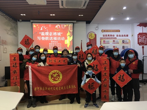 为推动春节期间“温暖在榕城”志愿服务关爱行动,传播党的声音,向社会传递温暖,培育我为人人,人人为我的良好风尚,为庆祝建党100周年营造文明和谐、团结奋进的社会氛围。2021年1月29日上午,鼓楼区温泉街道琼河社区联合共建单位福建省水文水资源勘测中心、福州水文分中心、闽江河口实验站的党员志愿者在社区活动中心开展新时代文明实践活动---“温暖在榕城” 迎新春送福。