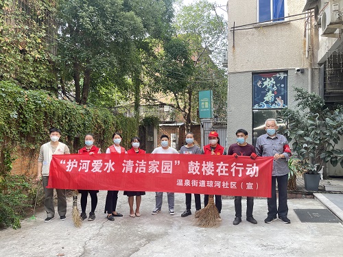 2022年11月19日,温泉街道琼河社区开展环境保护工作,宣传环境保护生态知识,不断提升辖区生活环境质量,社区党委副书记带领社区干部联合居民志愿者在辖区开展“爱河护河 清洁家园”主题活动。活动中,志愿者们分工合作,大家拿着扫把、垃圾夹对小区内脏乱死角白色垃圾进行地毯式捡拾。经过1个多小时的清理,小区卫生面貌焕然一新,卫生环境得到了极大改善。