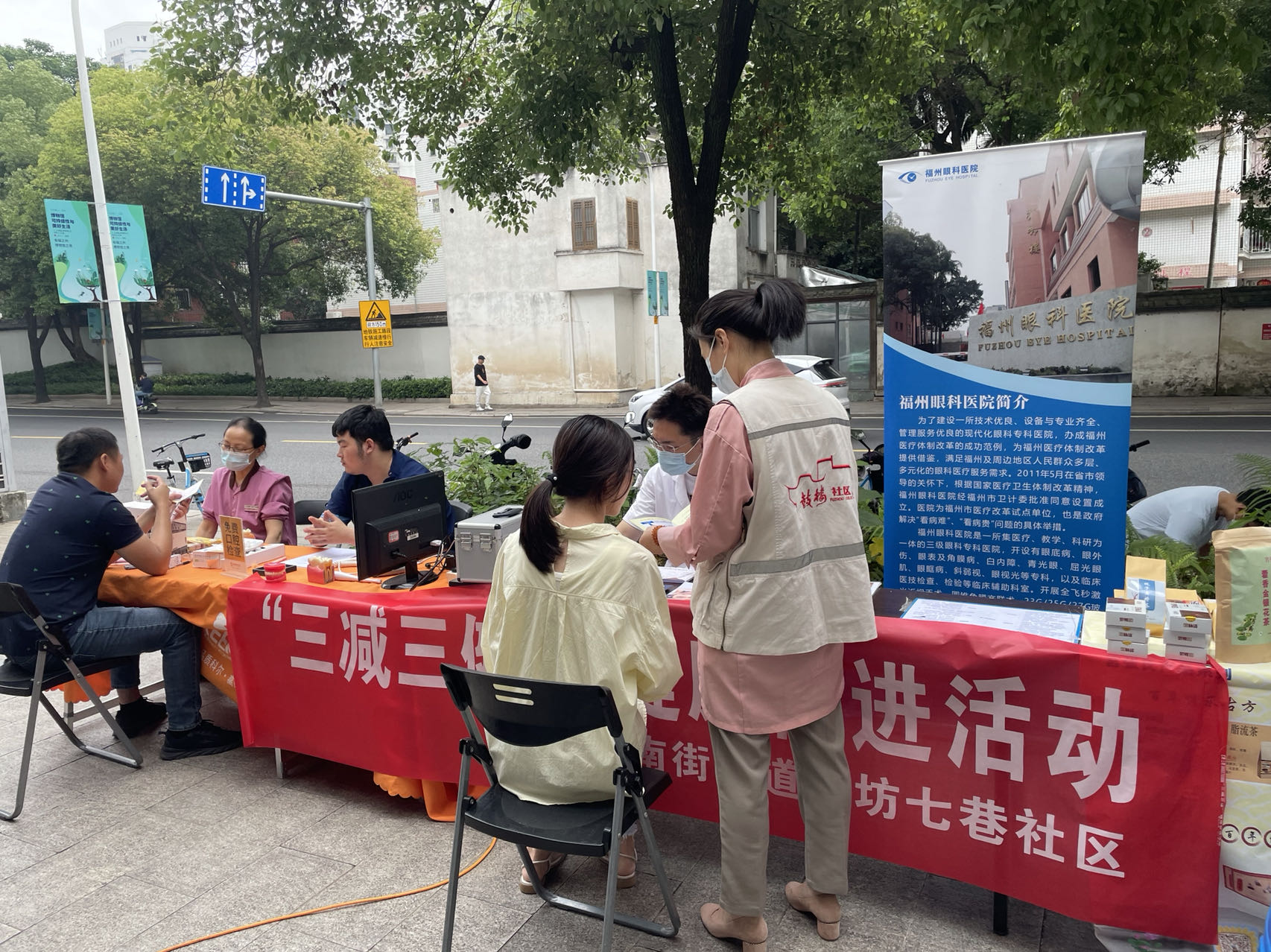 为提高辖区居民健康意识,倡导和传播健康的生活理念,6月5日上午,三坊七巷社区联合科尔口腔、福州眼科医院在通湖路开展“三减三健”全民健康宣传活动。