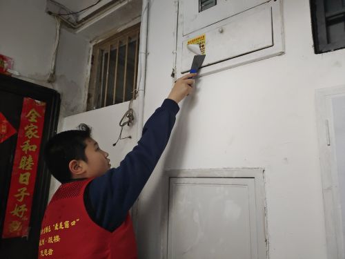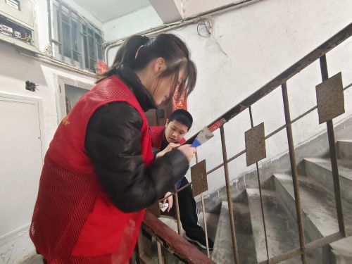 同时,志愿者还对墙面乱张贴等现象进行处理,对小区居民进行宣传引导,带动他们一起参与到活动中,打造良好的居住环境。
