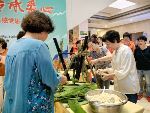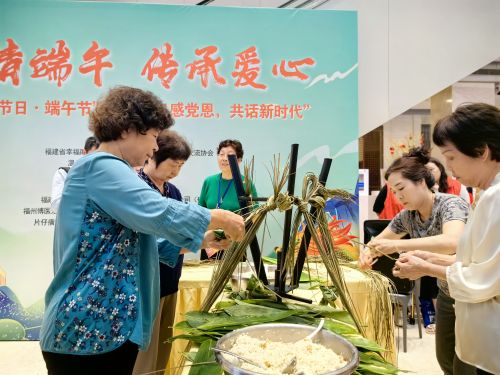 活动中,来自省知青协会、助老中心、汤边社区居民代表及福州市华林军休所等单位组成的六支队伍两两一组开始比赛。队员们纷纷拿出自己的“看家本领”,只见他们手法娴熟,粽叶翻飞间,一个个形状各异的粽子便呈现在大家眼前,现场不时传来阵阵欢声笑语,大家或互相交流包粽子的心得,或互相加油打气,共同为了包出更完美的粽子而努力。此次比赛以“数量、速度、质量、美观”作为评判标准,经过激烈角逐,评选出了优秀的选手并给予表彰鼓励。