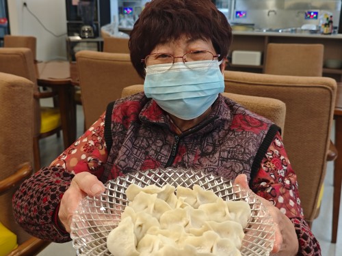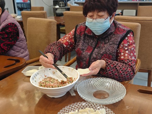 老人们围坐在一起,一边交流着各自的手法与心得,一边熟练地擀皮、填馅、捏合,转眼间一个个饱满的饺子便摆满案板。随后,大家又兴致盎然地开始“搓米时”——将糯米团搓成一粒粒圆润小巧的丸子,寓意团圆美满。当热气腾腾的饺子和“米时”端上桌时,长者们品尝着自己的劳动成果,脸上洋溢着满足与幸福。
