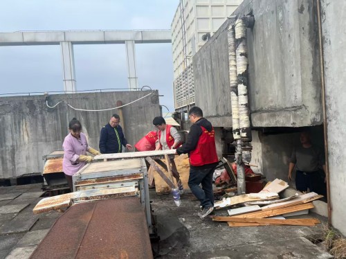 志愿者们重点清理楼顶平台积存垃圾、废弃家具;同步整治楼道内乱堆放的纸箱、杂物等,同时提醒居民不要堆放杂物,保持通道畅通。