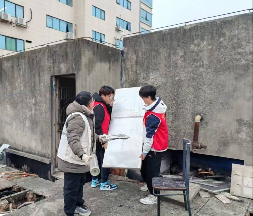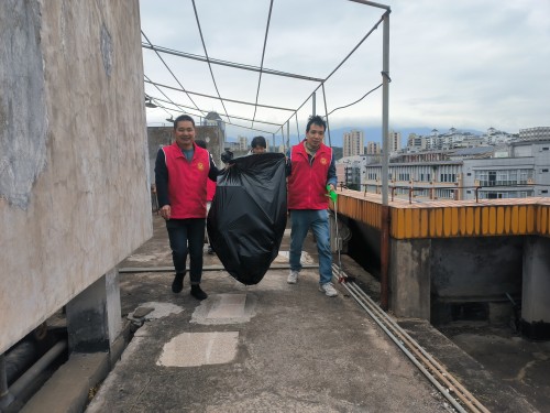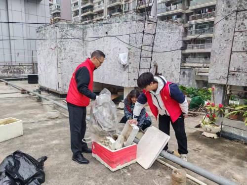 活动现场,大家齐心协力,主动攀爬老旧居民楼,对楼顶、楼道卫生死角的大件杂物和废弃物进行清理。有序分工合作,高效完成清运工作。一番清理后,原本杂乱的小区公共区域旧貌换新颜,为居民营造了清爽宜居的生活环境。