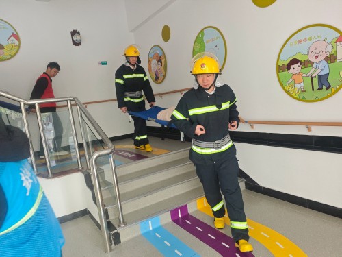 演练由中心总经理担任总指挥,现场设立抢险组、疏散组、救护组等多个专项工作组,明确职责分工。为兼顾真实性与安全性,演练特别组织院内具备行动能力的长者亲身体验逃生,针对行动不便的失能半失能长者,则采用卫生中心模拟人进行全流程转运演示,确保演练场景覆盖日常运营全业态。