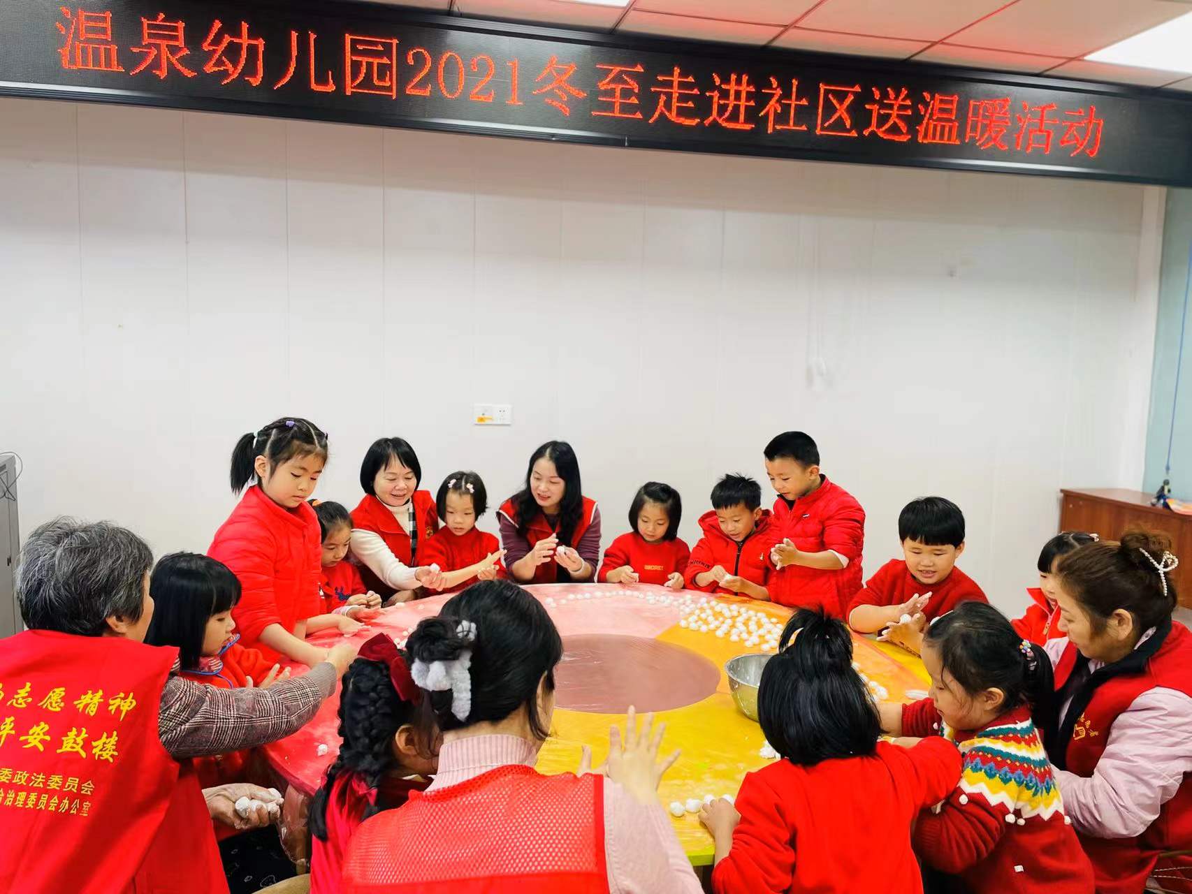 “搓米时齐搓搓,依奶疼依哥。依哥有老婆,依弟单身哥”“冬至”,是我国农历中一个非常重要的节气,也是中华民族的一个传统节日。2021年12月21日,在冬至当日,汤门社区与温泉幼儿园的孩子们在社区新时代文明实践站开展“冬至送温暖”活动。今天室外虽然寒气袭人,但活动现场温暖四溢,其乐融融。孩子们为社区奶奶们表演了福州民谣《冬至歌》。随后老人们以及社区的志愿者们带着小朋友一起动手搓细,边搓边唱,其乐融融。同时,社区党员干部的和志愿者分工合作为大家煮汤圆,小朋友们亲手为老人们送上甜、香、软、糯的爱心汤圆。老少围坐一起齐搓“米时”、煮“米时”、滚“米时”、吃“米时”,到处洋溢着“家”的味道。