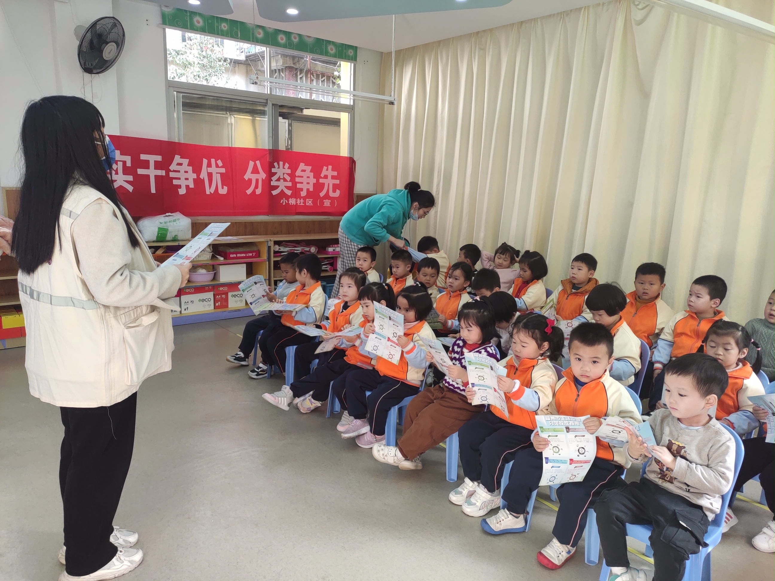 为进一步提升幼儿对垃圾分类的认识,加强幼儿的垃圾分类投放意识,2月13日,小柳社区组织社区工作人员来到小柳幼儿园开展垃圾分类宣传活动。