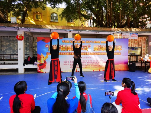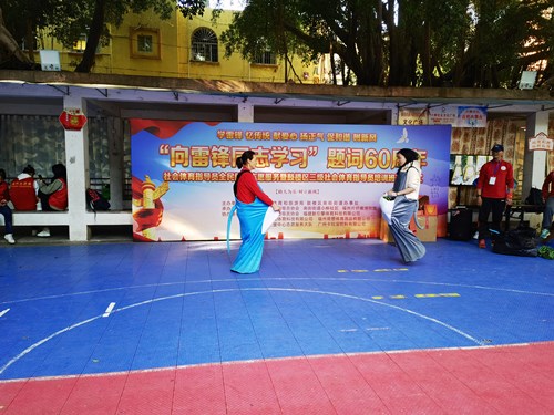 活动中,社会体育指导员在现场开展了无极球、袋鼠运瓜、流水作业、旱地冰壶等丰富多彩的全民健身活动以实际行动,让雷锋精神在新时代绽放更加璀璨的光芒。
