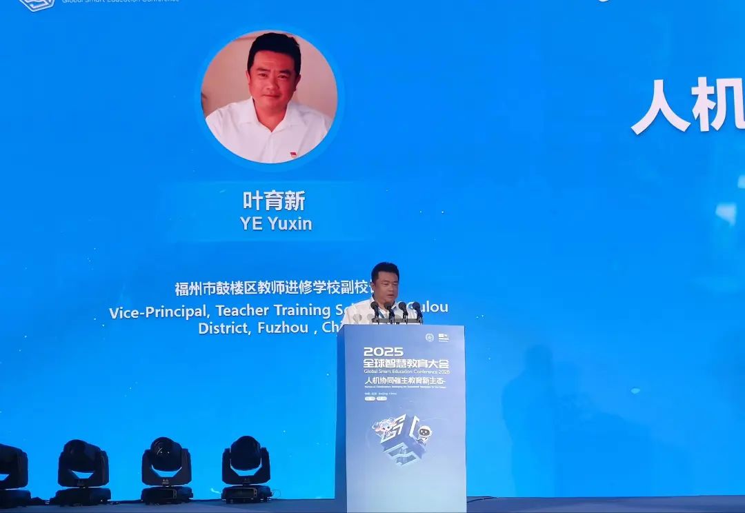 受福州市鼓楼区政协副主席兼教育局局长叶艺芳委托,福州市鼓楼区教师进修学校副校长叶育新代表鼓楼教育受邀参会,并在备受瞩目的平行会议“迈向智慧教育的数字化转型”局长报告环节作题为《人机协同下的智慧教育转型——福州市鼓楼区的实践与探索》的特邀报告,成为本次大会展示中国区域智慧教育亮眼成果的重要声音。