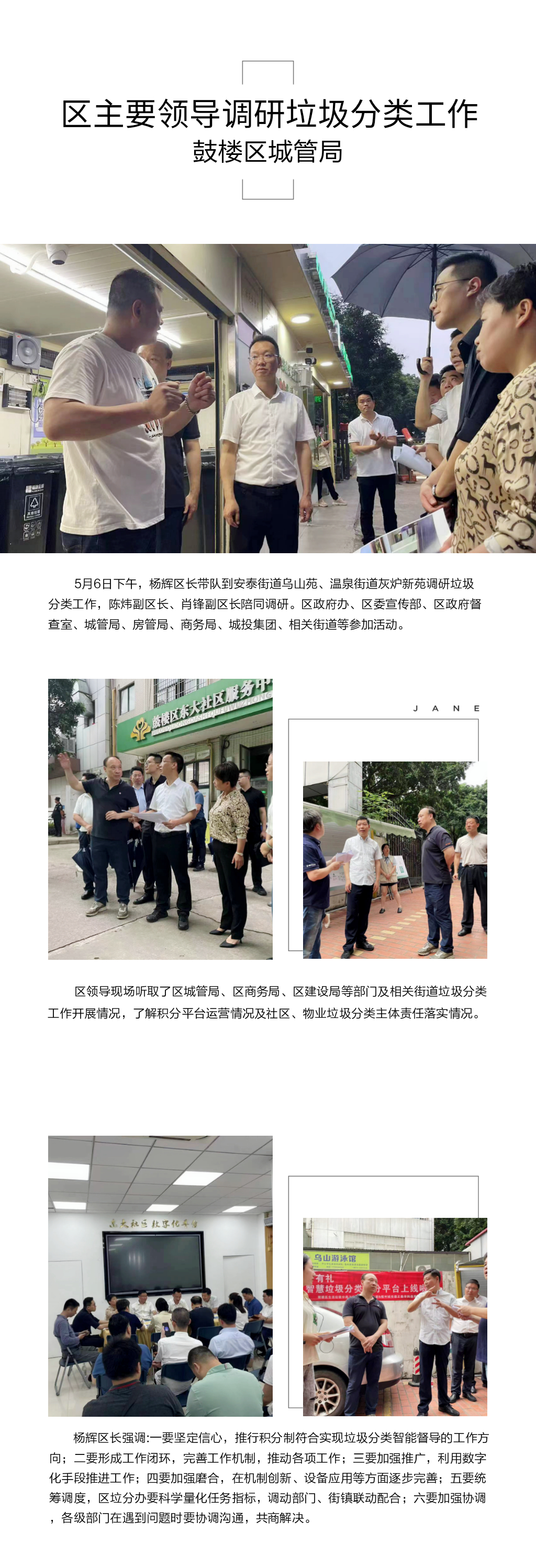 区政府主要领导调研垃圾分类工作