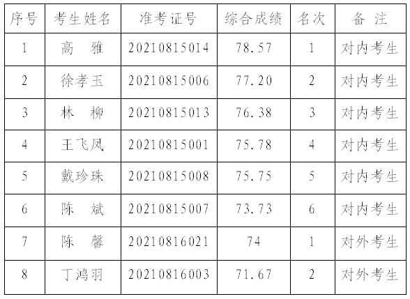 根据《2021年鼓楼区社区工作服务站专职工作人员招聘公告》要求,在笔试、面试、考核的基础上,水部街道拟聘用八位考生为我街道社区工作站专职工作人员,现将拟聘用人员名单公示如下:
