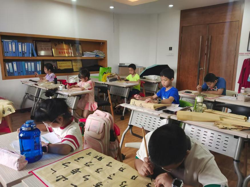 孩子们从握笔姿势、坐姿矫正开始,慢慢掌握笔画、笔顺、偏旁部首,结课时每人都交出了工整的硬笔作品,毛笔字也有了“像样的章法”!