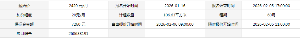 3、竞租标的的月租金按下列公式计算:月租金=最终成交价格,成交单价按竞价结果确定。