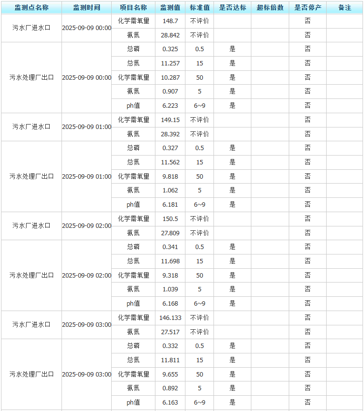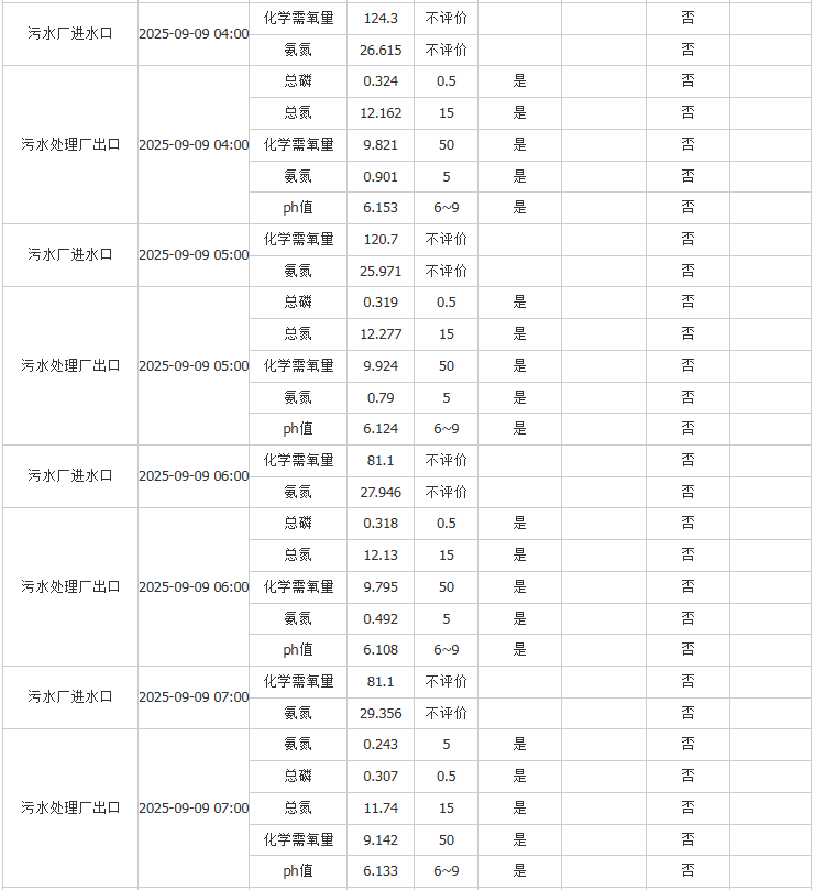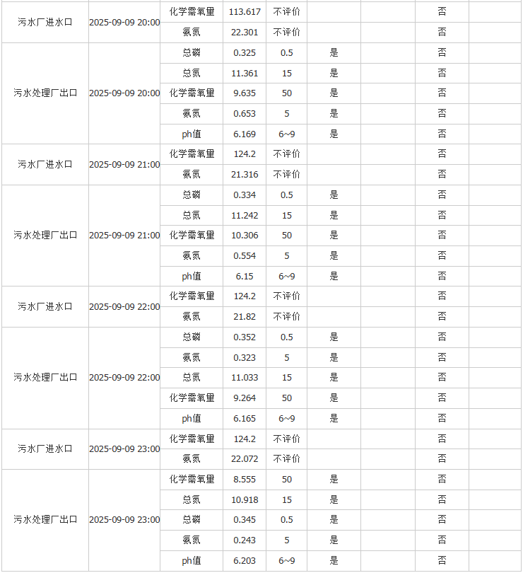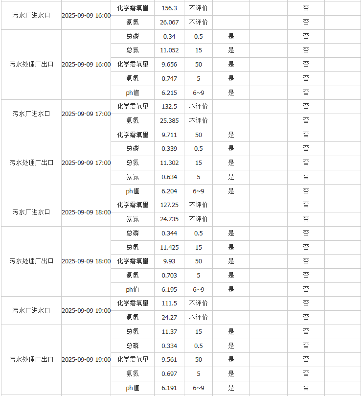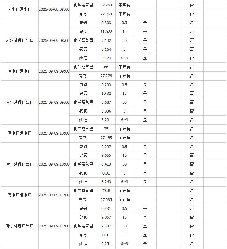祥坂污水处理厂水质数据2025.9.9
