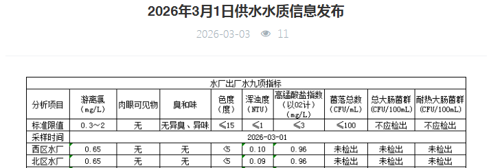 祥坂污水处理厂水质数据2026.3.1