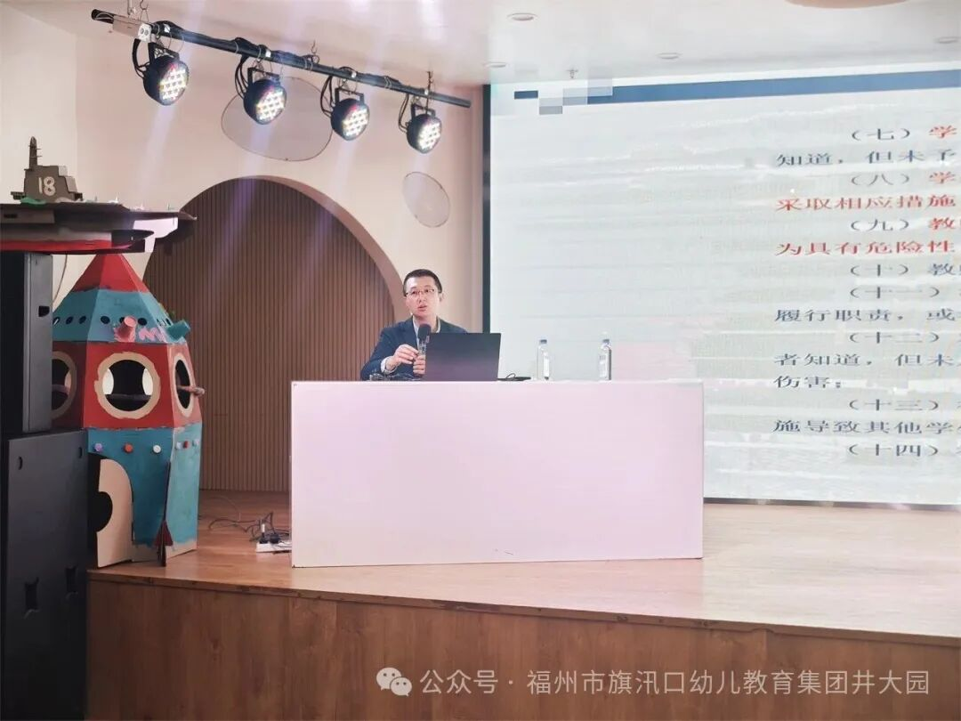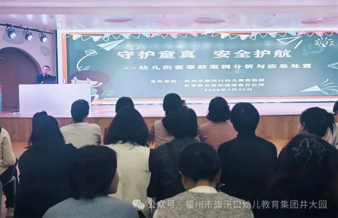 为织密校园安全防护网,清晰界定幼儿伤害事故校方责任边界,全面提升全体教职工的安全风险预防、应急处置与规范履职能力,3月25日,旗汛口幼儿教育集团邀请北京联合经纪福建省分公司经理傅大荣,为集团全体教职工带来一场幼儿伤害事故案例分析与应急处置专题安全培训。全员参训、全心学习,为孩子们筑牢坚实的安全屏障。