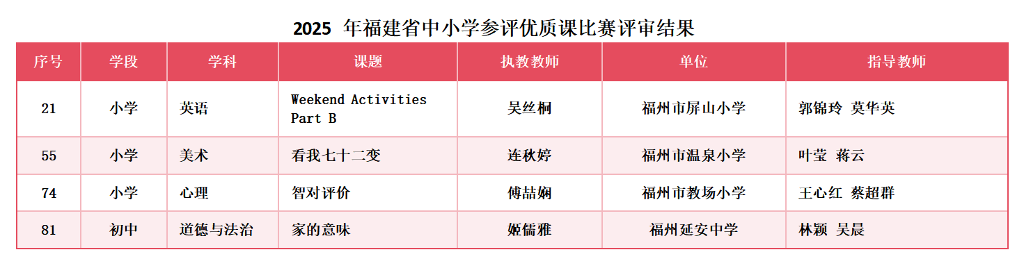 此次斩获省优质课奖项,我内心满是荣幸与感恩。衷心感谢学校领导的鼎力支持,为我搭建了展示小学英语教学实践的优质平台;更感谢教研员们的悉心指导,从教学设计的巧思打磨,到课堂互动的细节雕琢,每一步都凝聚着专业的心血。这份荣誉既是鼓励,更是鞭策,未来我定会怀揣这份热忱,在小学英语教学之路上深耕不辍、探索精进。