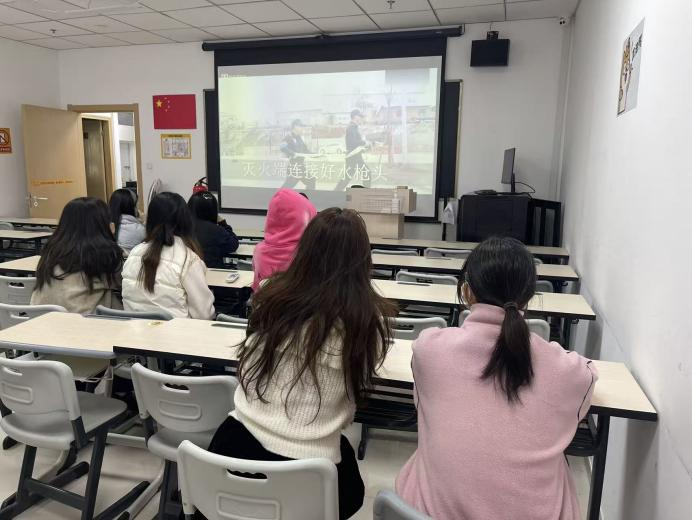 观看消防相关视频,开展器材培训。了解干粉灭火器扑救火灾的原理,重点培训灭火器“提、拔、握、压”操作规范,确保每位教师能独立使用灭火器材。