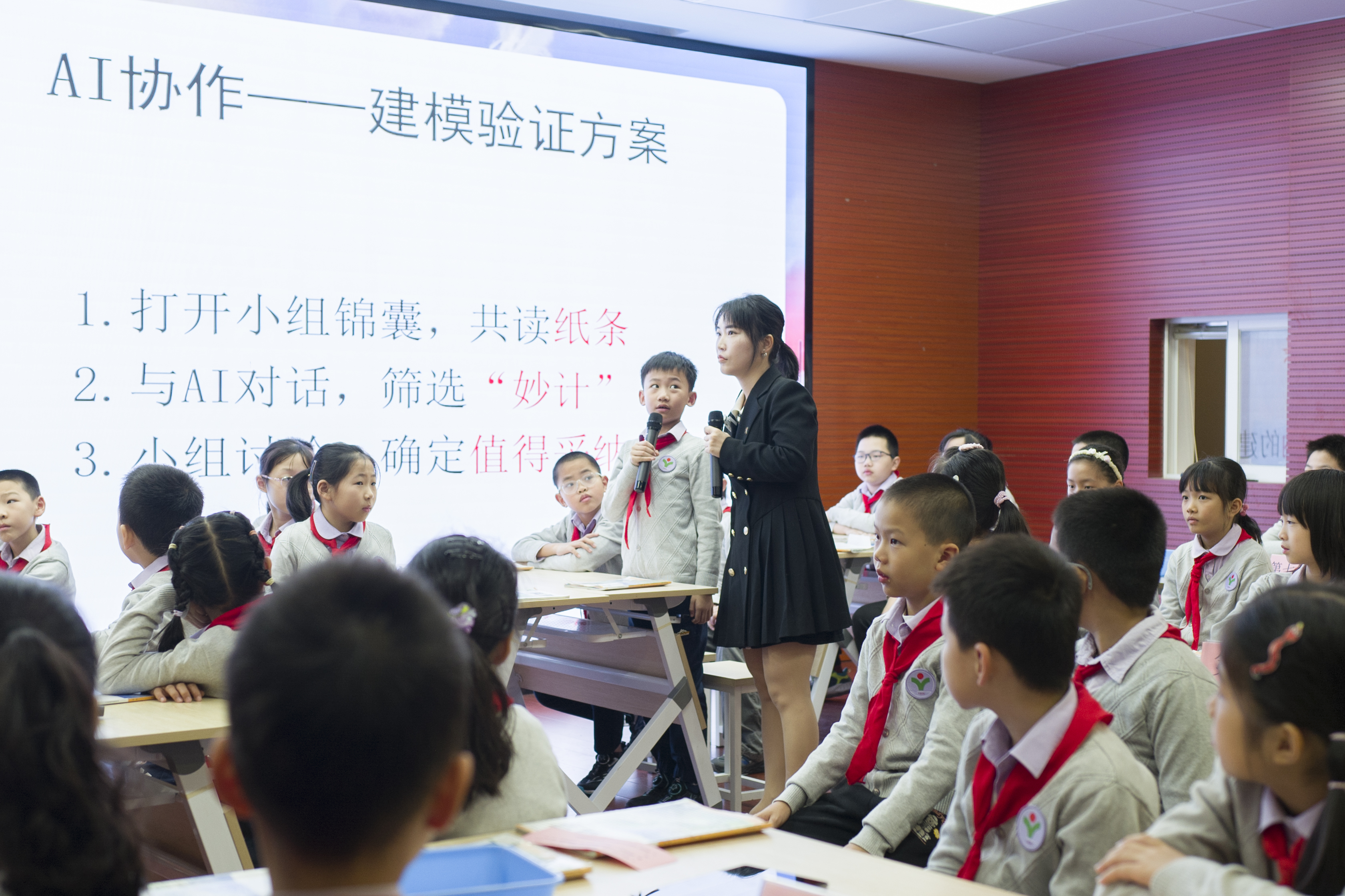 《河流和湖泊》:鼓一小方玉萍老师打破传统模式,让 AI 化身 “学习参谋”。学生通过与 AI 对话筛选信息、获取建模思路,再用托盘、太空沙等材料动手建模,实现 “情境创设 —AI 辅助 — 实践验证” 闭环,培养人机协作解决复杂问题的能力。