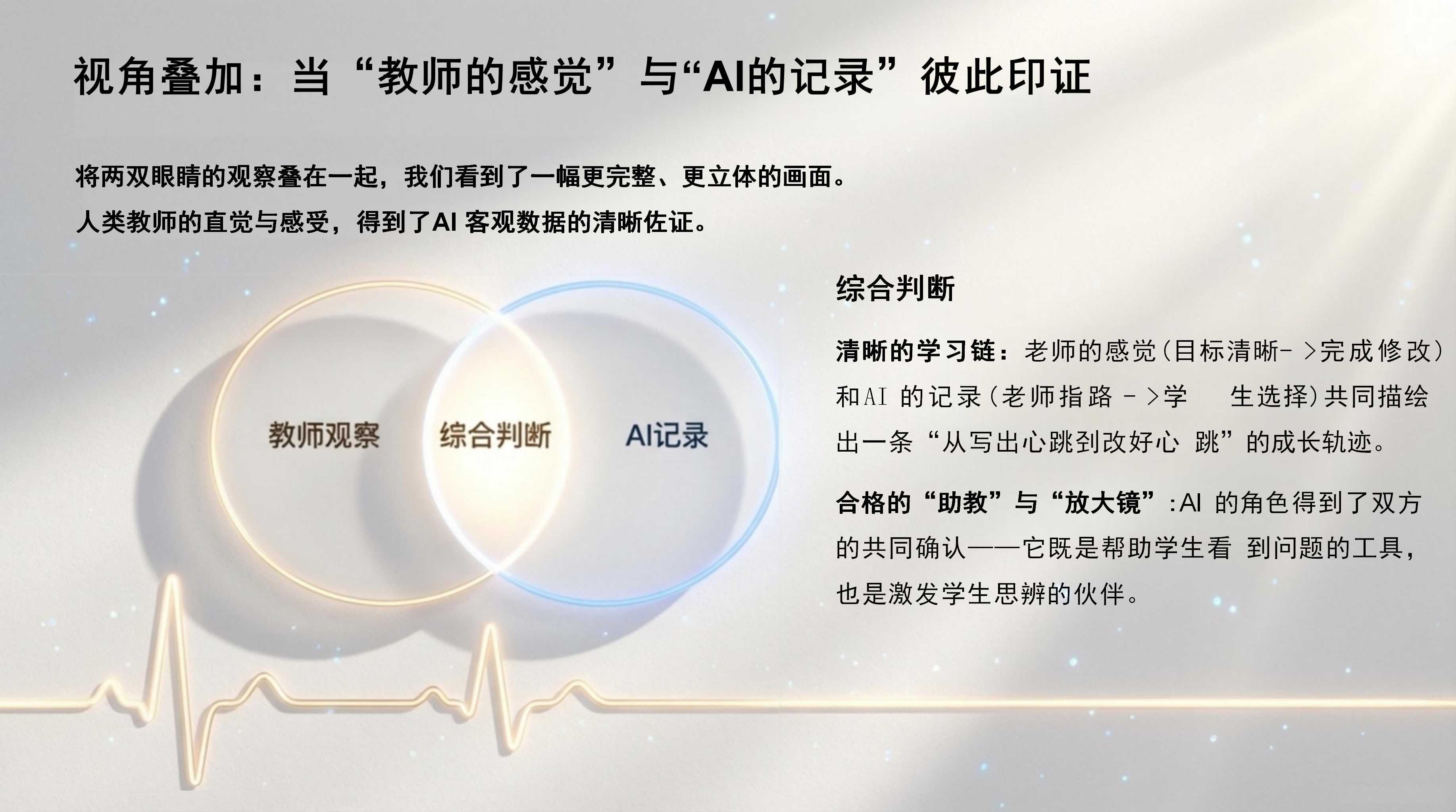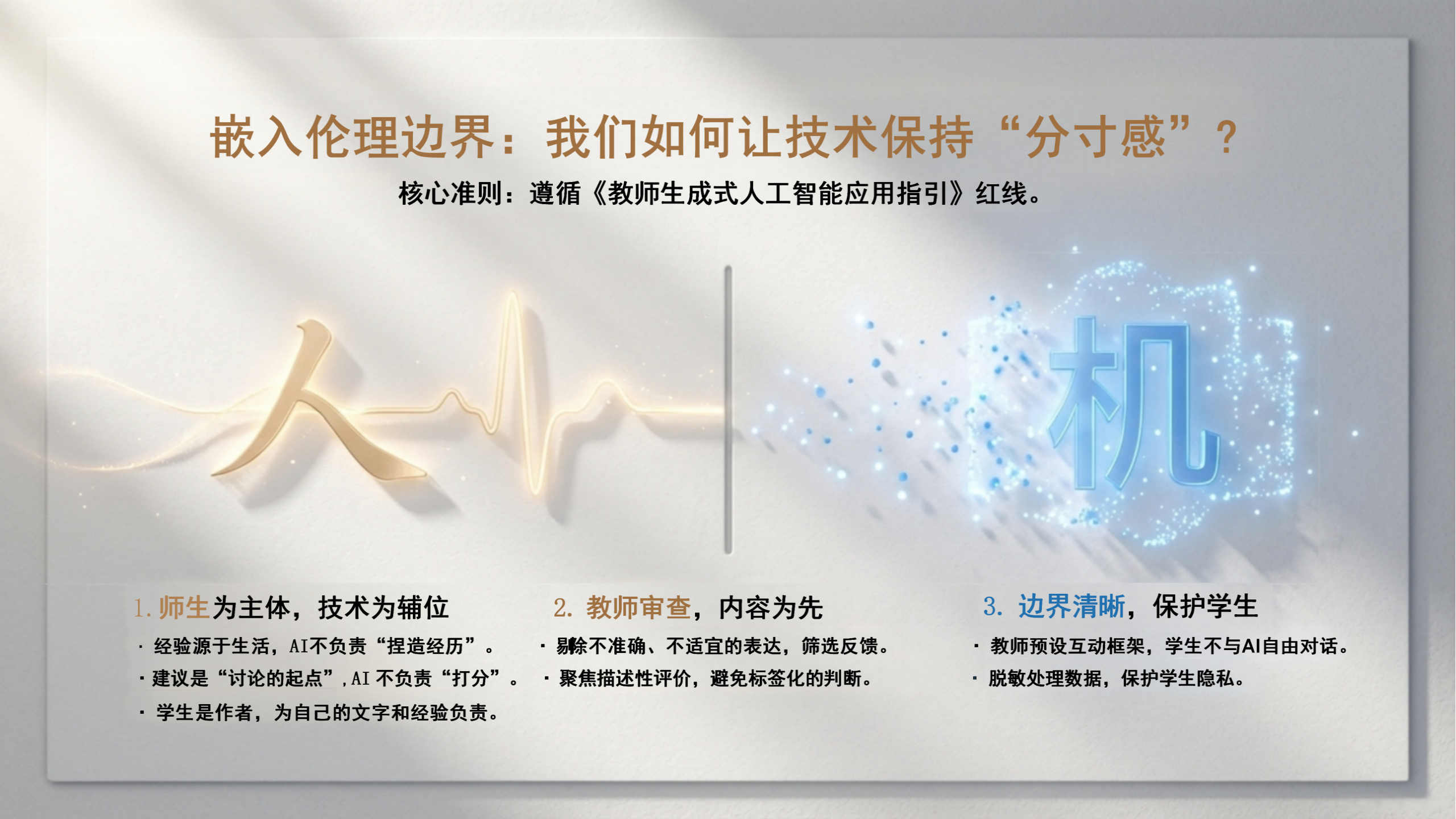 在技术应用上,团队严守伦理边界,坚持“师生为主、技术为辅”。AI 在课上仅作为“镜子”与“陪练”,通过数据的审慎应用,助力学生实现从“写得出”到“改得好”的进阶。