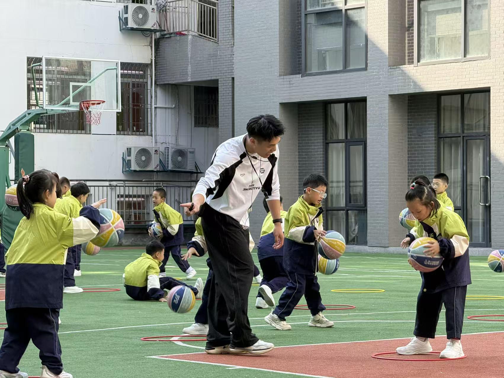 中山小学夏彰键老师则针对低段学情,带来了《操控性技能:篮球运球》。他以游戏化任务贯穿全课,利用 AI 设备实时监测运动密度与生理负荷。在数据的科学导航下,课堂既有“热辣滚烫”的趣味体验,又有“精准高效”的技能达成,完美诠释了“乐中练、玩中学”的智慧体育新样态。