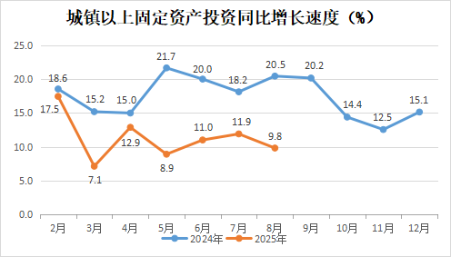 1-8月,全区城镇以上固定资产投资同比增长9.8%,比上月回落2.1个百分点。其中,项目投资同比增长7.4%;房地产开发投资同比增长15.7%;工业投资同比增长16.2%;民间投资同比增长12.7%。