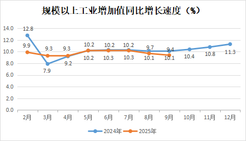 1-9月,全区规模以上工业增加值同比增长9.4%,与上月回落0.3个百分点。全区规模以上工业产值累计完成85亿元,同比增长10.2%。分行业看,1-9月,全区19个工业行业中6个行业产值实现同比增长。其中,产值排名第一的计算机、通信和其他电子设备制造业增势迅猛,同比增长34.8%;有色金属冶炼和压延加工业增长18.9%,拉动全区规上工业产值增长1.7个百分点。产值排名第三的通用设备制造业同比增长10.0%。高新技术产业平稳增长,1-9月工业产值同比增长26.0%。